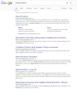 Seperti yang dapat Anda lihat pada gambar kiri, Overton gagal ditempatkan di laman produk laut tetapi masing-masing perusahaan yang terdaftar menunjukkan nama laut. Ini adalah contoh utama tentang bagaimana memiliki kata kunci yang ditempatkan dengan benar di URL domain utama dapat mengarah pada hasil pencarian yang ditingkatkan.